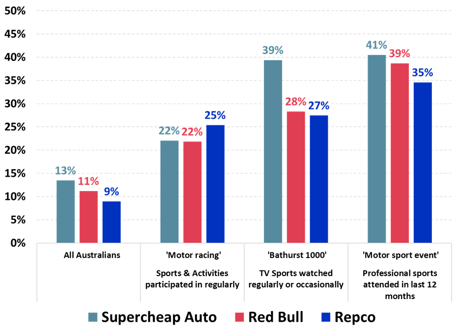 “For attendees at motor sport events, brand association increases even further – up to 41% for Supercheap Auto, 39% for Red Bull, and 35% for Repco – indicating the large value available to brands for sponsoring a sport with the most committed and passionate followers of the sport.