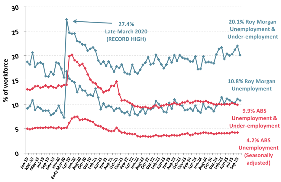 Roy Morgan Unemployment & Under-employment (2019-2025)