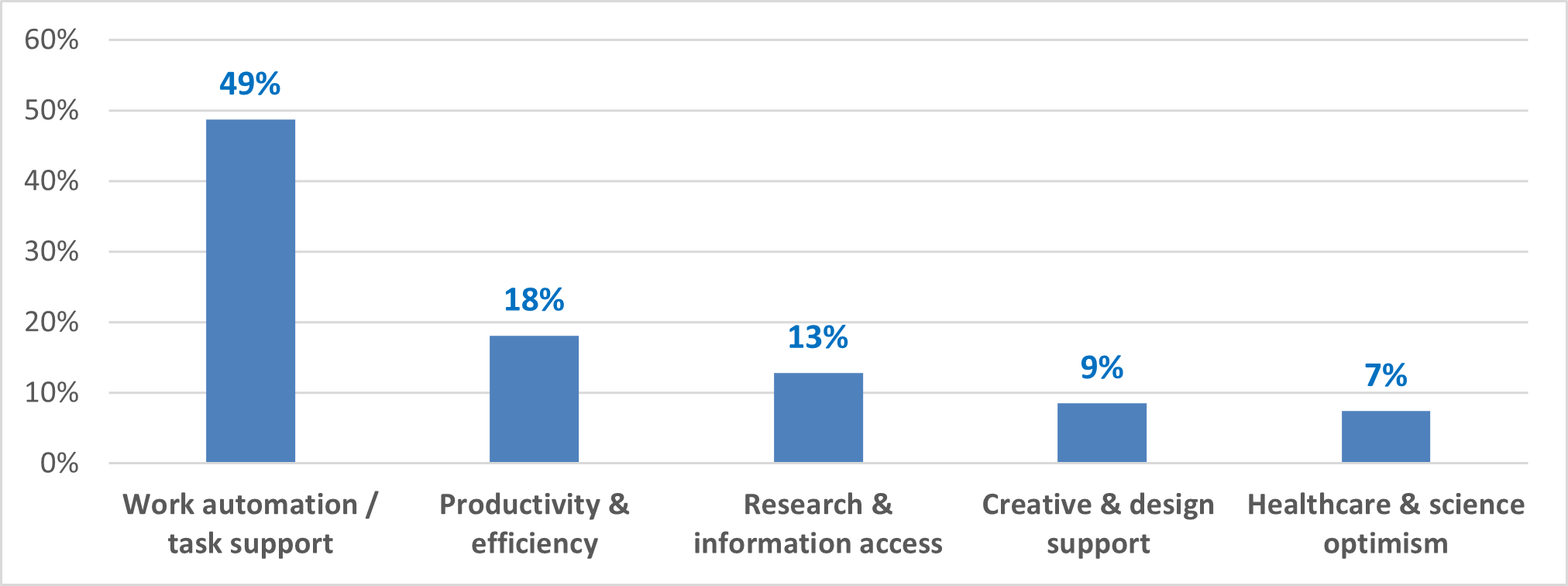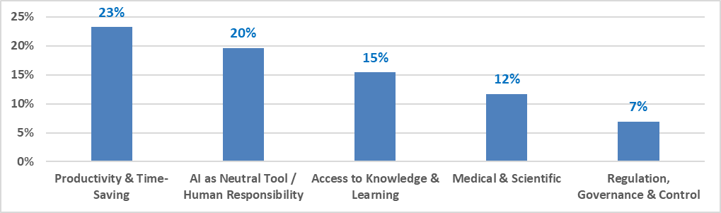 Respondents repeatedly link AI to speed, convenience, and time-saving benefits in both work and daily life.