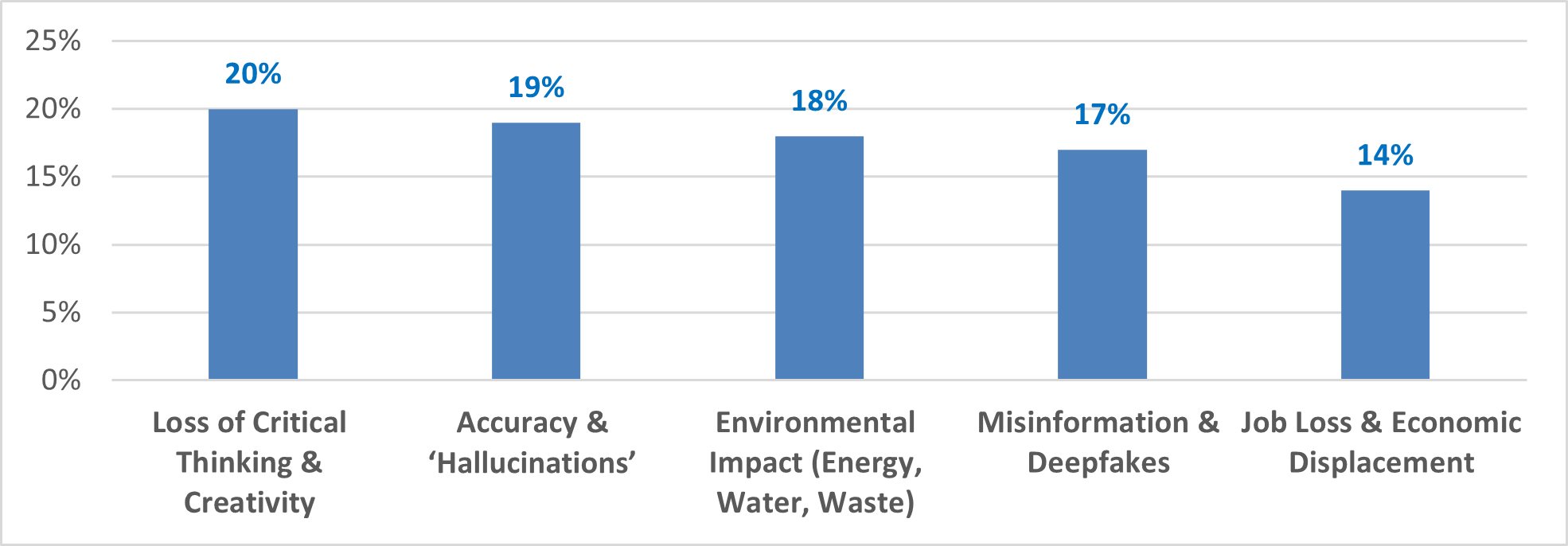 Respondents worry about fake content, deception, and malicious use harming individuals and society.