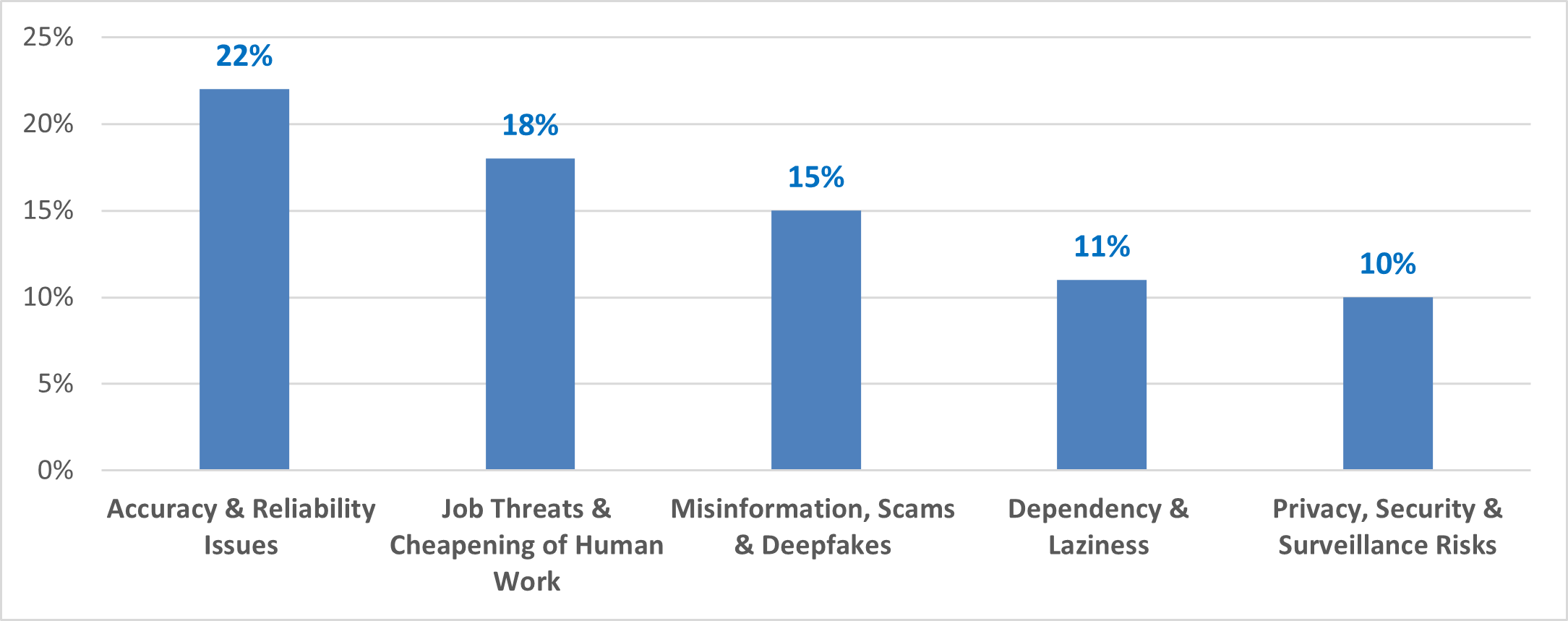 Australians who say personally, AI creates more problems than it solves highlight accuracy issues, job threats and misinformation as key concerns