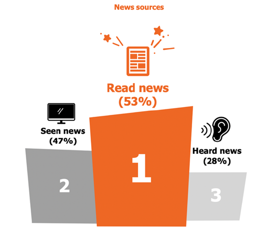 - Reading is top: More Australians read news (53%) than watch it (47%) or listen to it (28%).
