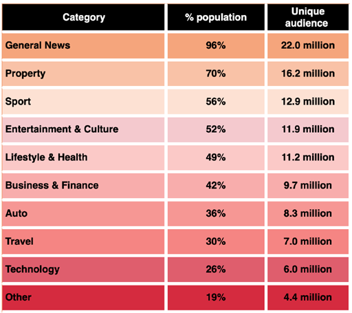 This diversity of news content consumption reflects the richness of Australia’s interests, and the many avenues news publishing offers advertisers looking to connect with audiences. From national to local publications, general to special interest news categories, there is something for every Australian reader.
