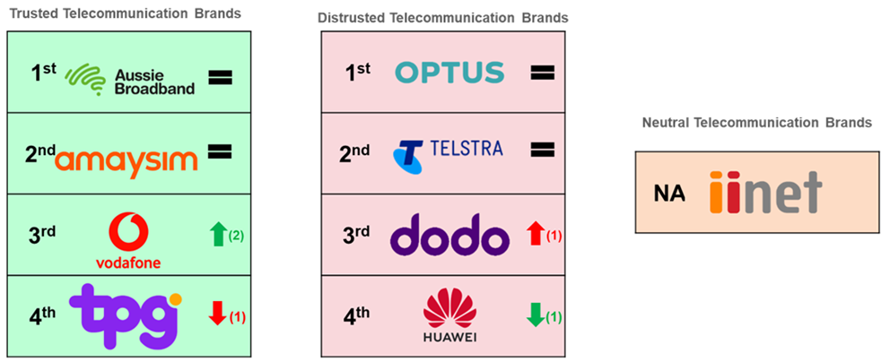 The standout insight is Amaysim: despite being owned by Optus, it remains untouched by the fallout from Optus’s scandals. Consumers clearly don’t associate the two brands.