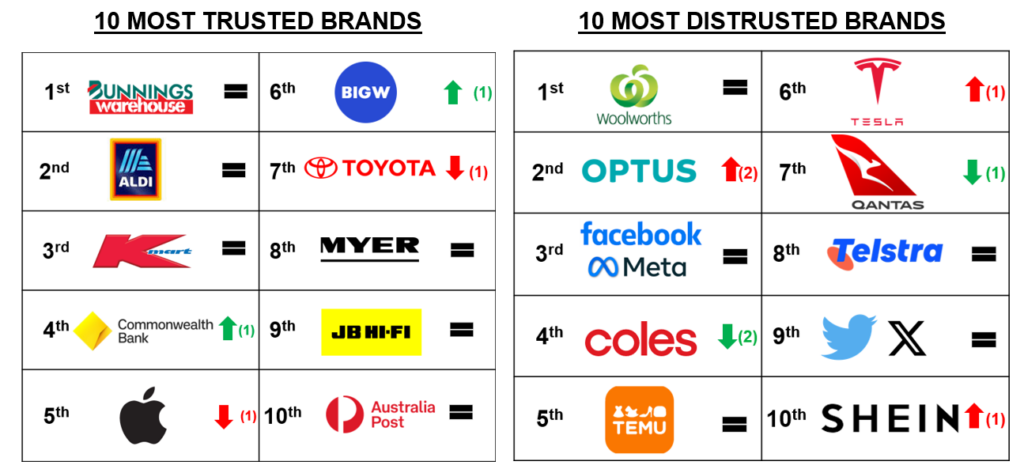 Distrusted Brands – Optus, Tesla, Shein, Nestle and Google deteriorate in the rankings