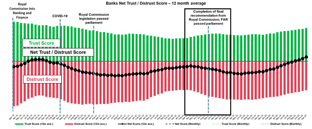 “Since the final recommendations from the Royal Commission were legislated and implemented in September 2023, there is growing confidence among Australians that the Banking industry, which is centred on the big four Banks, is becoming more customer-centric, reliable and accountable for their actions, while fewer Australians cited the banking industry to be profit-driven and unethical.