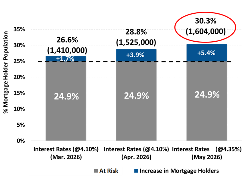 Mortgage Risk projections based on an interest rate increase in May 2026 by 0.25%